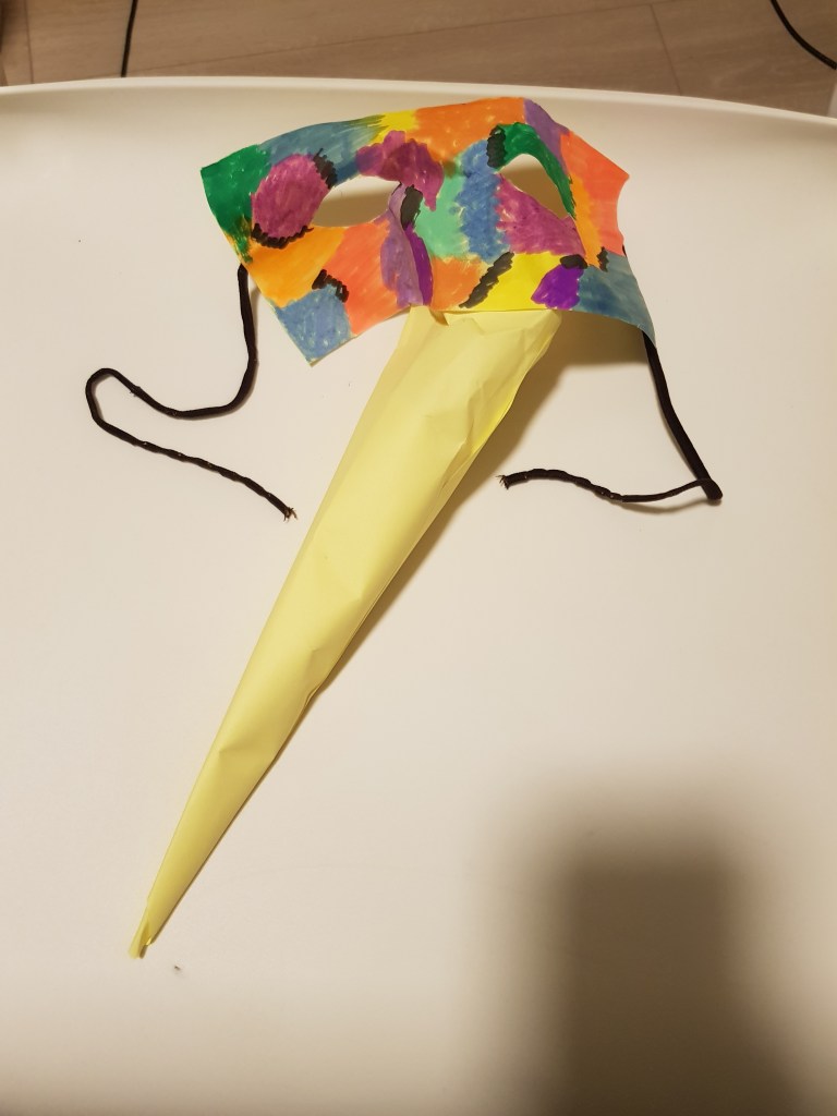 Step 4: Attach the face mask to the beak with glue.
