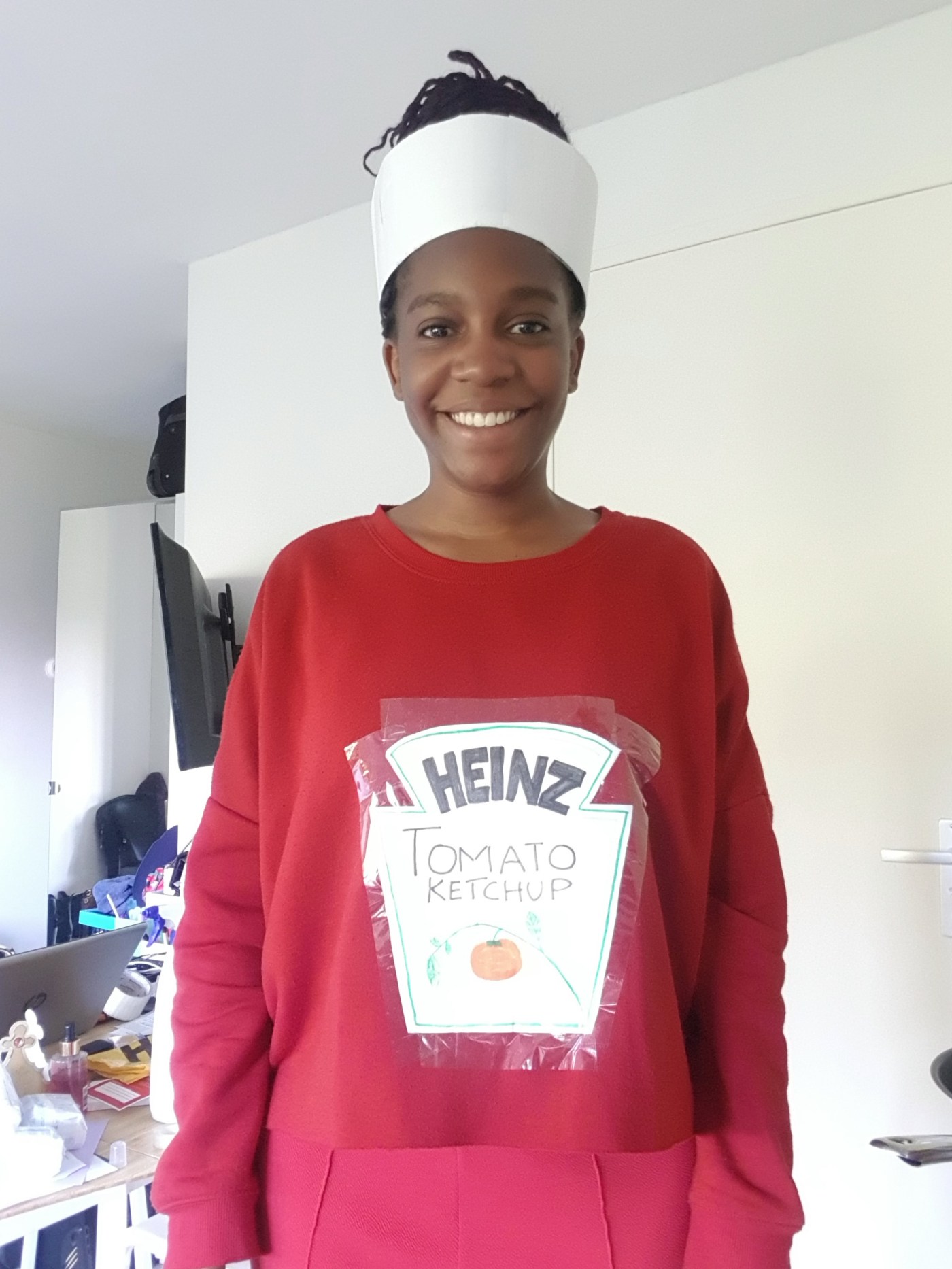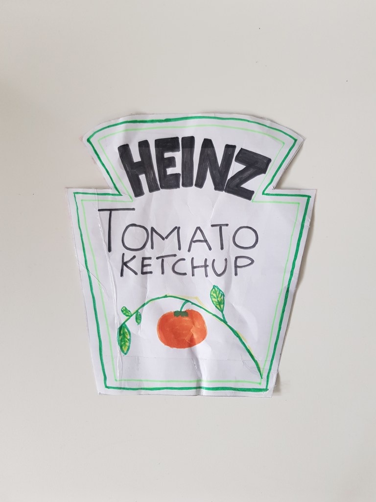 Inspiration: I was stuck for a costume and then opened my fridge and saw my ketchup and thought I drew the Twix logo, it shouldn’t be so hard to draw the Heinz logo.