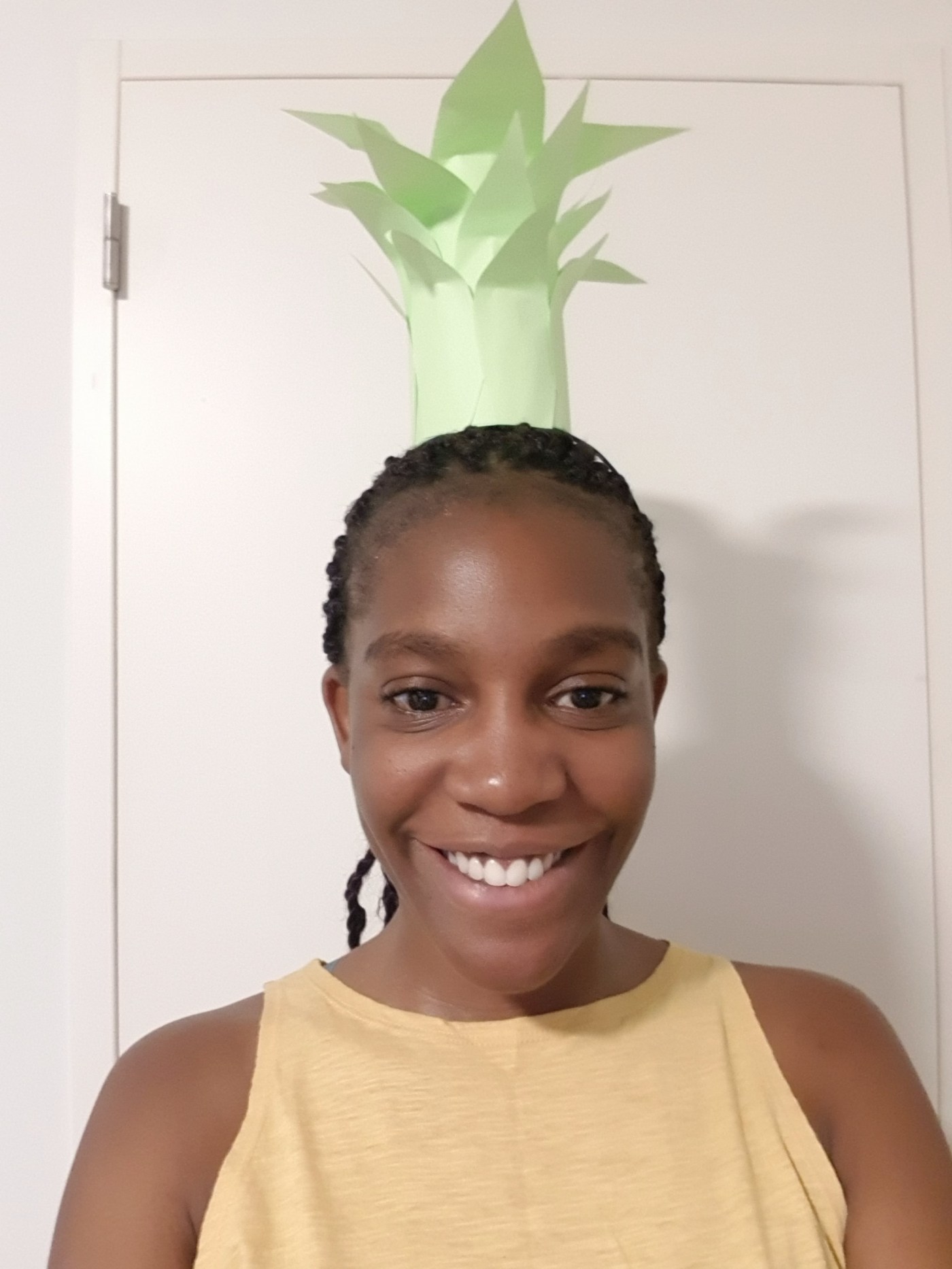 Inspiration: When I did my groceries this day, I saw a pineapple in the store and thought since I can’t buy it, let me dress up like it. Pineapples are my second favourite fruit but I don’t know how to peel them safely so I only buy the cut up pieces. If you know how to peel a pineapple, please help a girl out.