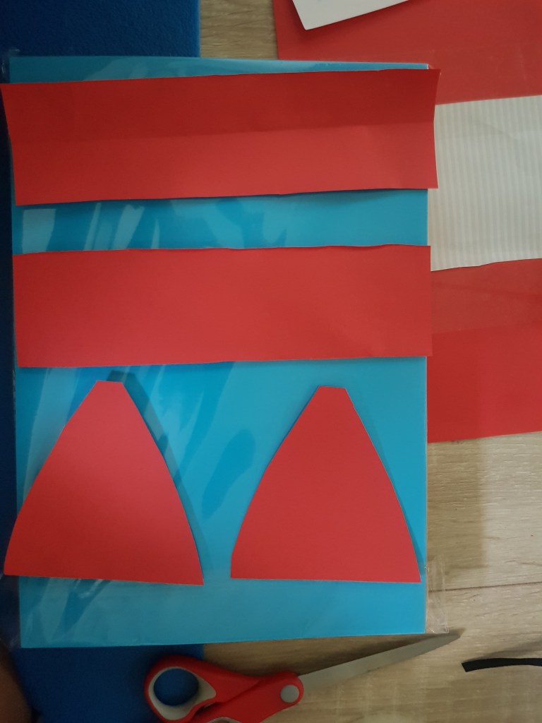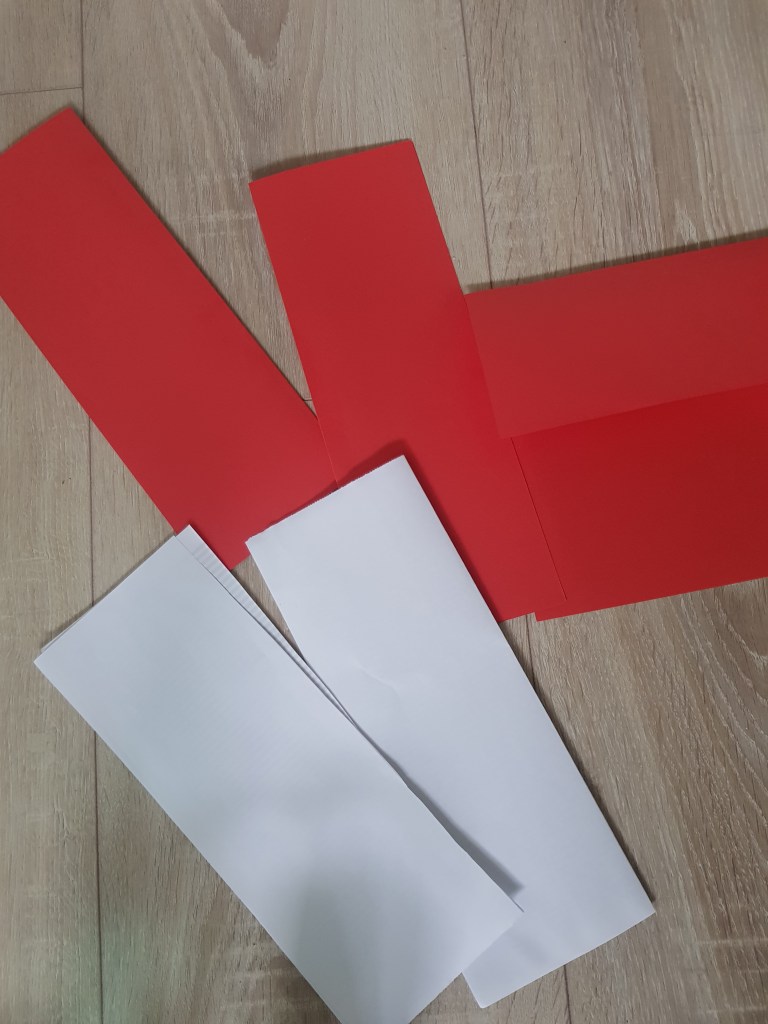 Step 1: Cut up white and red paper for the hat.