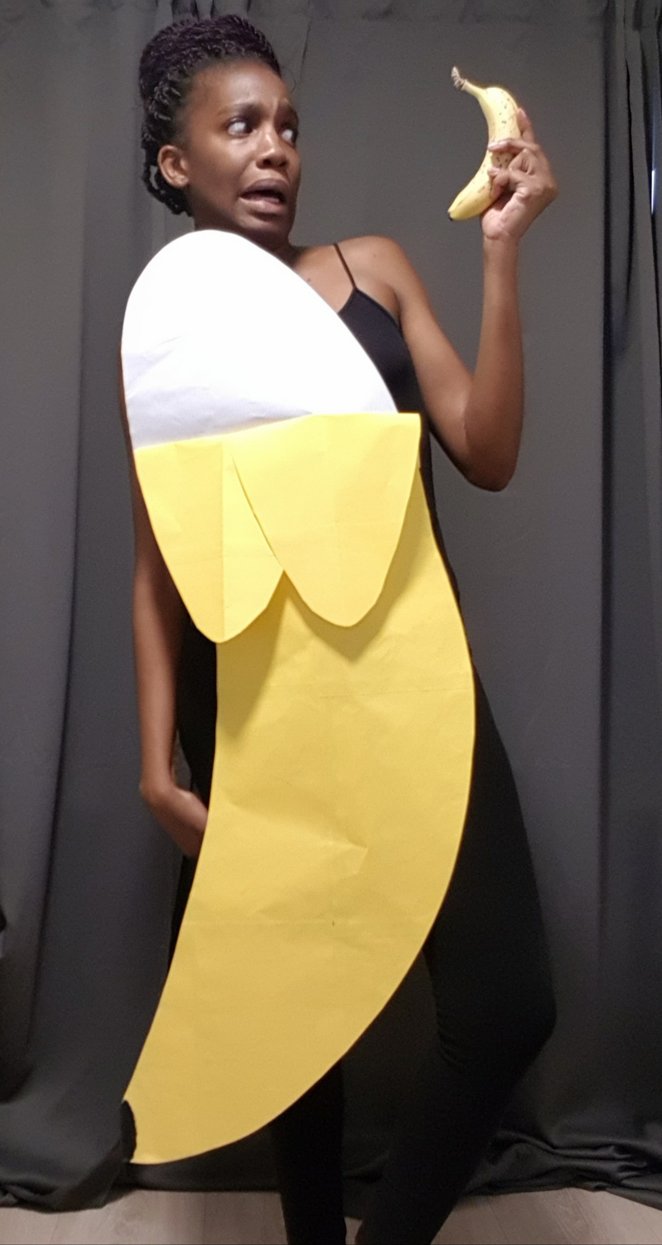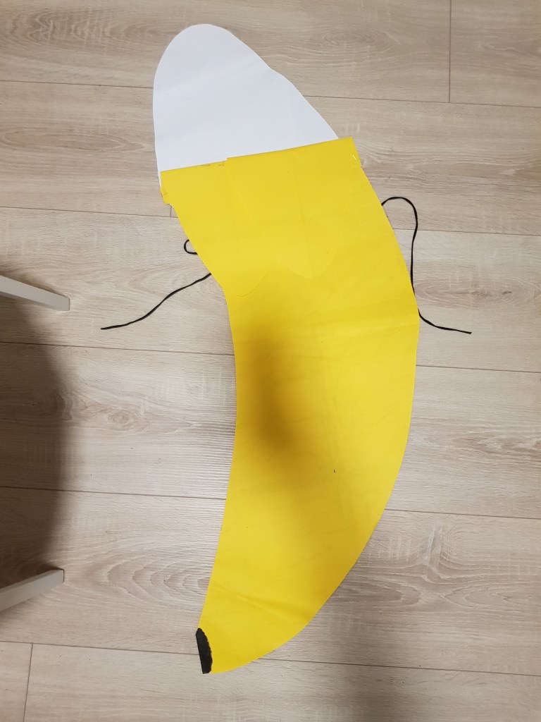 Step 1: Stick yellow A4 papers together to make life size banana.