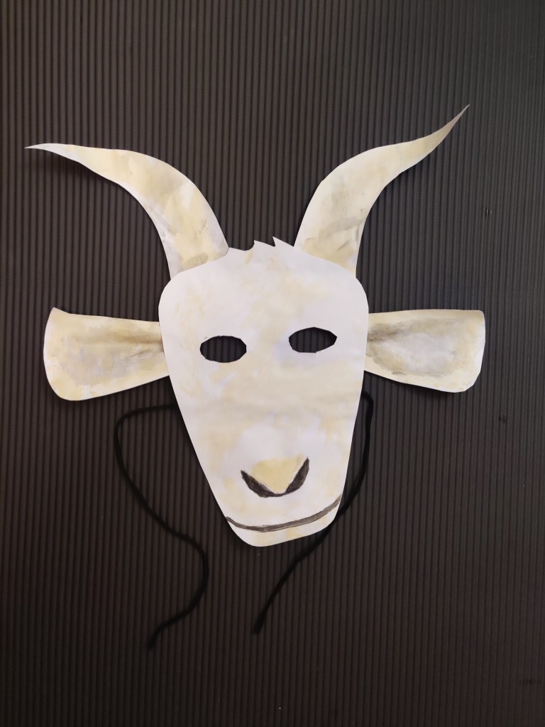 Step 2: Paint the goat face, horns and ears then glue them together to make goat mask.
